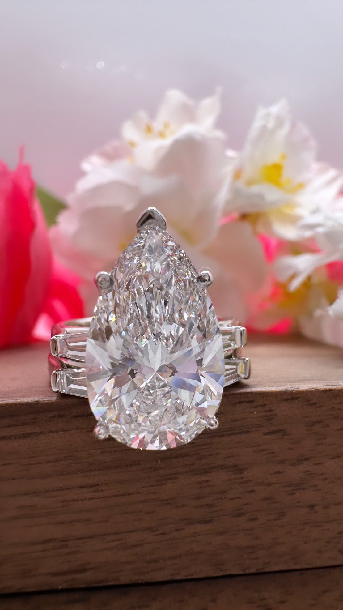 With its graceful, tapered outline, a pear shaped diamond is an elegant and flattering choice for an engagement ring. Jewelers consider the pear shaped diamond a “fancy shape,” meaning it’s a shape other than round. Reminiscent of a tear drop, a pear shaped diamond blends the best of the round and marquise diamond shapes.