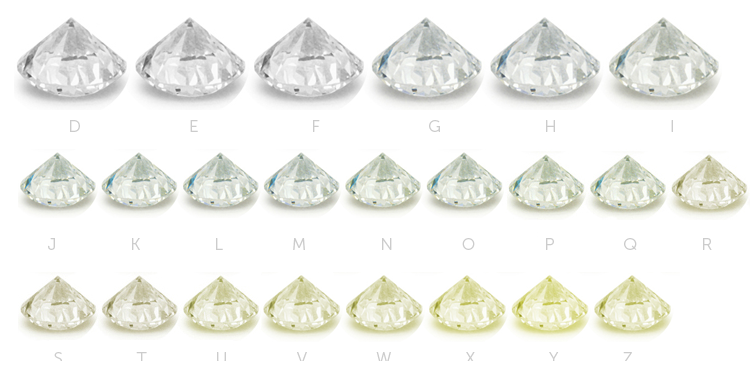 Diamonds with color grades of G, H, I, and J are considered near colorless diamonds. These diamonds have an extremely subtle tint of color that is very hard to detect to the untrained eye. A good visual comparison for the color of near colorless diamonds would be a glass of water with a single drop of tea in it.