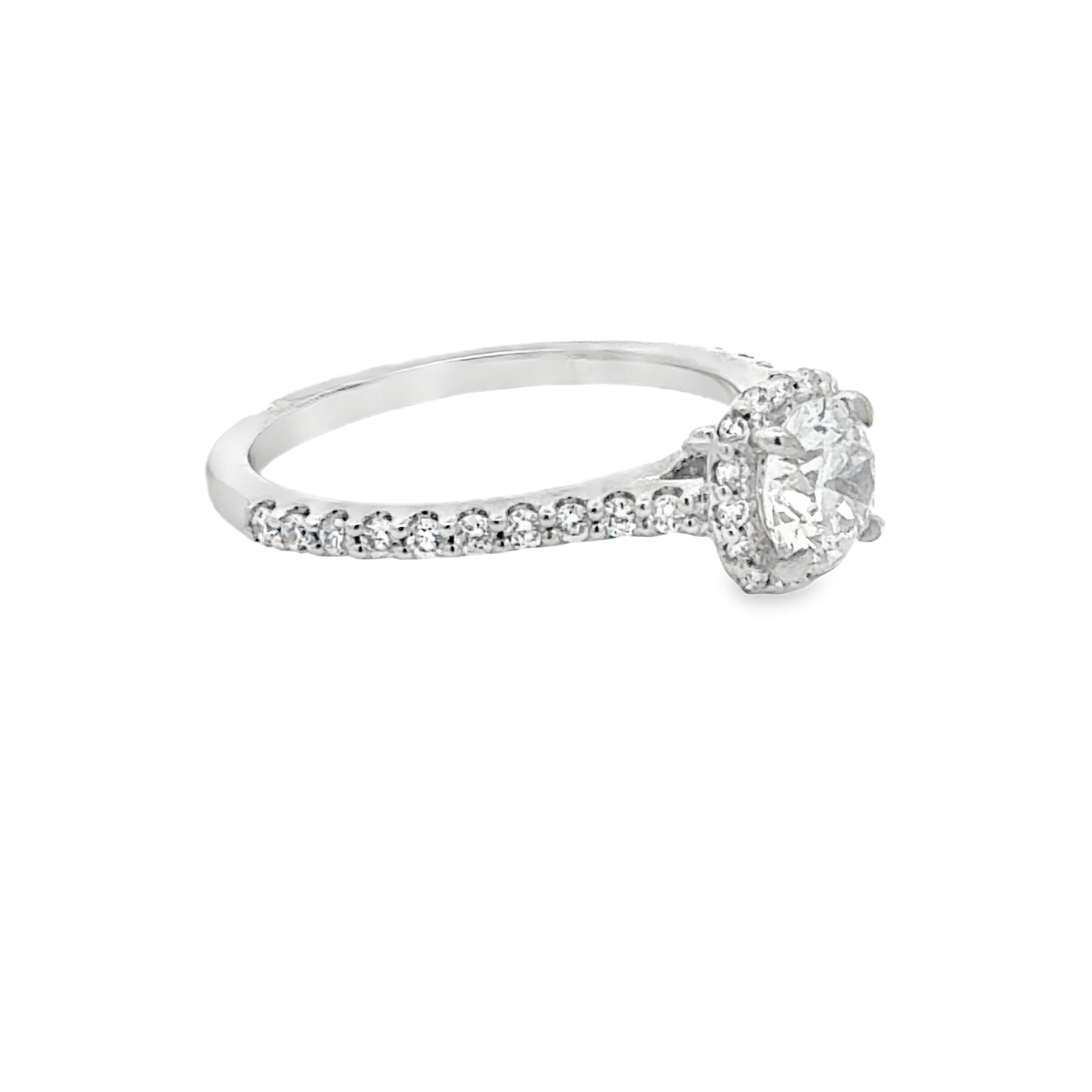 This elegant ring features a 0.72ct Lab D VVS2 Round Diamond set in 14k white gold with 0.25ctw of accent diamonds.