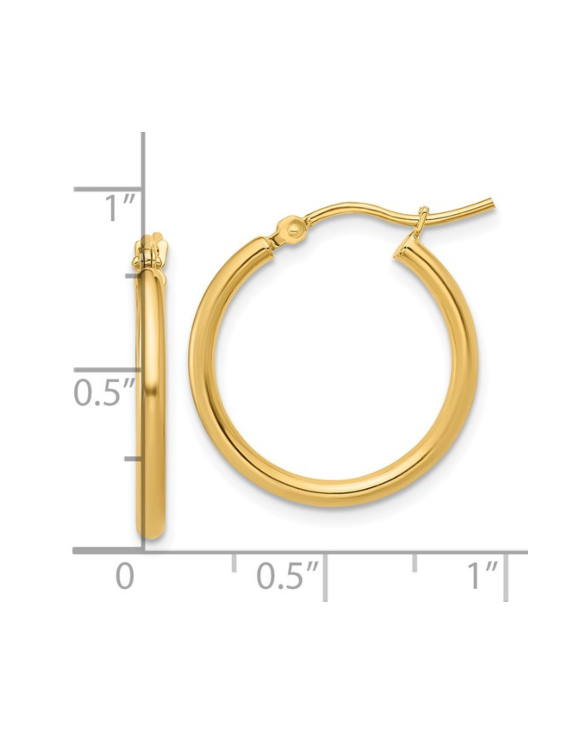 Expertly crafted from high-quality 14K gold, these polished hoop earrings are both versatile and elegant. With a diameter of 20mm, they provide a subtle yet noticeable touch to any outfit. Perfect for any occasion, these earrings are a timeless addition to any jewelry collection.