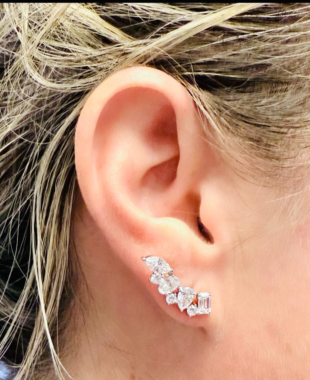 Expertly crafted in 14k gold, these ear climbers feature a stunning 3.00ctw of lab diamonds. Designed to climb the ear for a striking look, these earrings exude luxury and elegance. This is a made to order piece and can have a lead time of 3-4 weeks depending on availability for production.