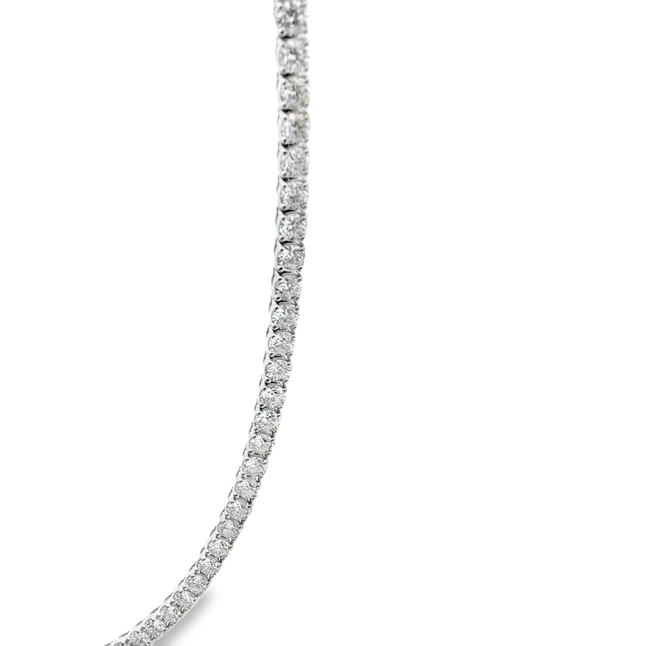 This stunning classic tennis necklace features CVD lab diamonds set in 14k White Gold. The total length of the necklace is 17 inches.