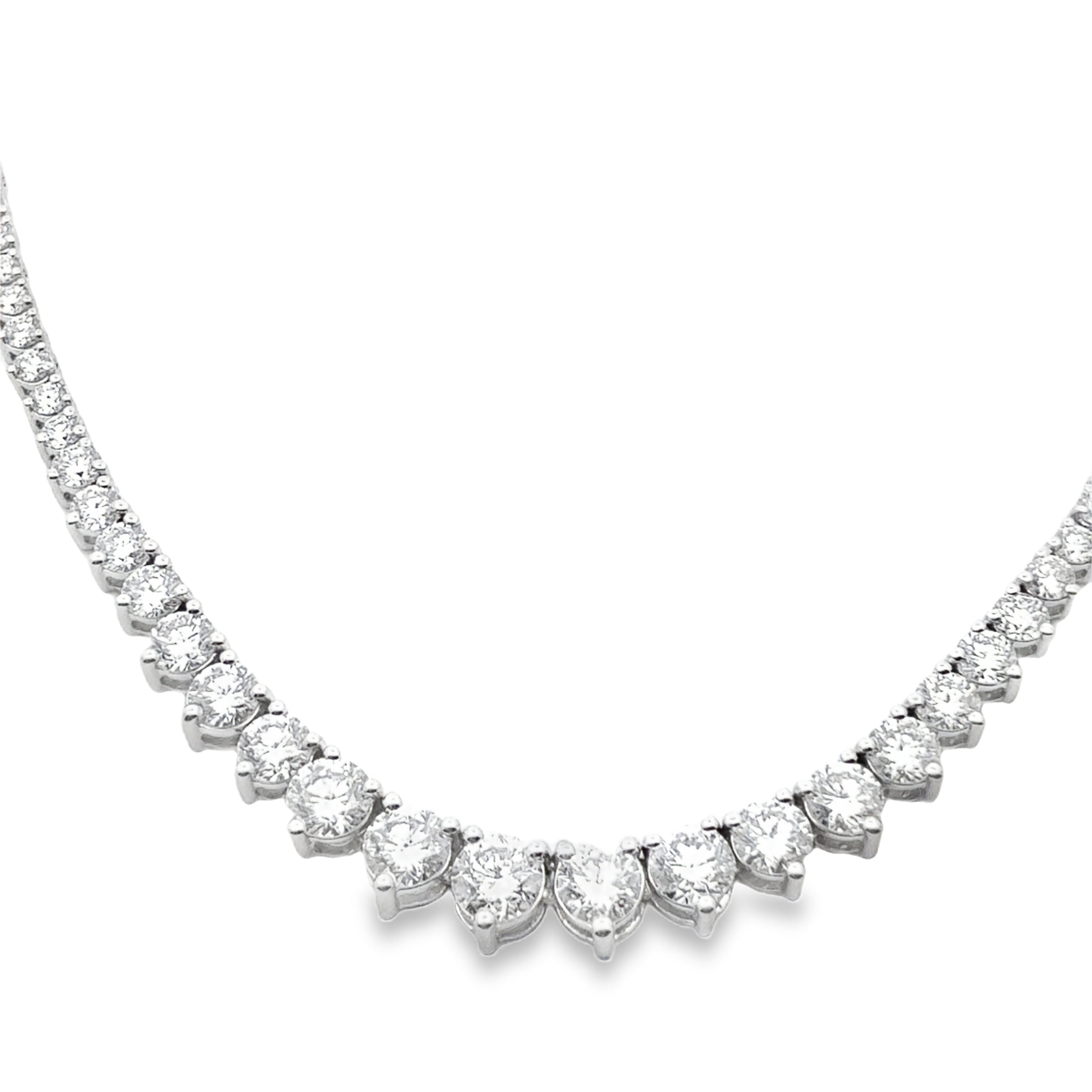Crafted with 7.34ctw lab diamonds and 14k white gold, this adjustable graduated tennis necklace offers a versatile choice for any outfit. Its removable 16 to 18 inch adjustment link allows for a perfect fit every time. Elevate your style with this luxurious and timeless piece.