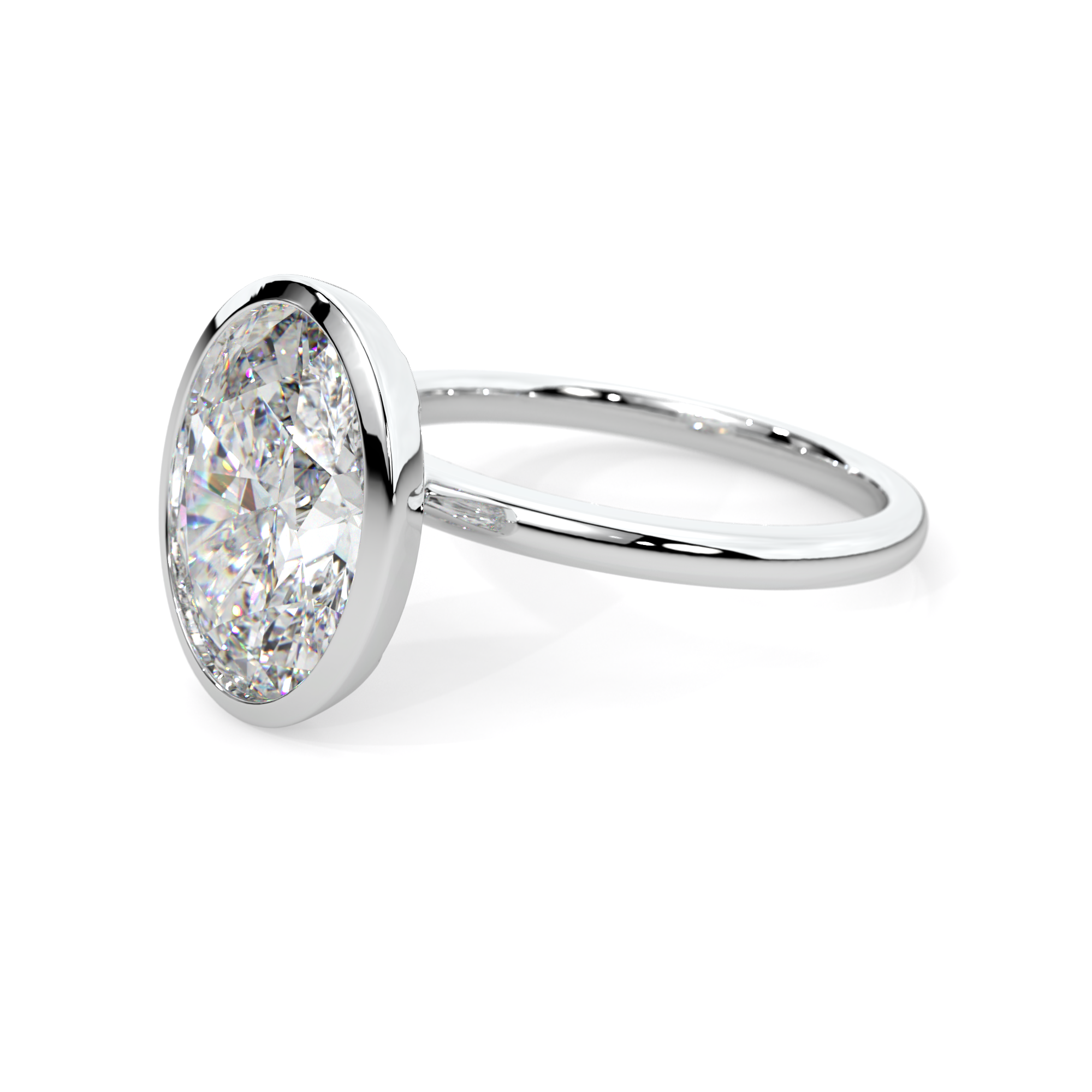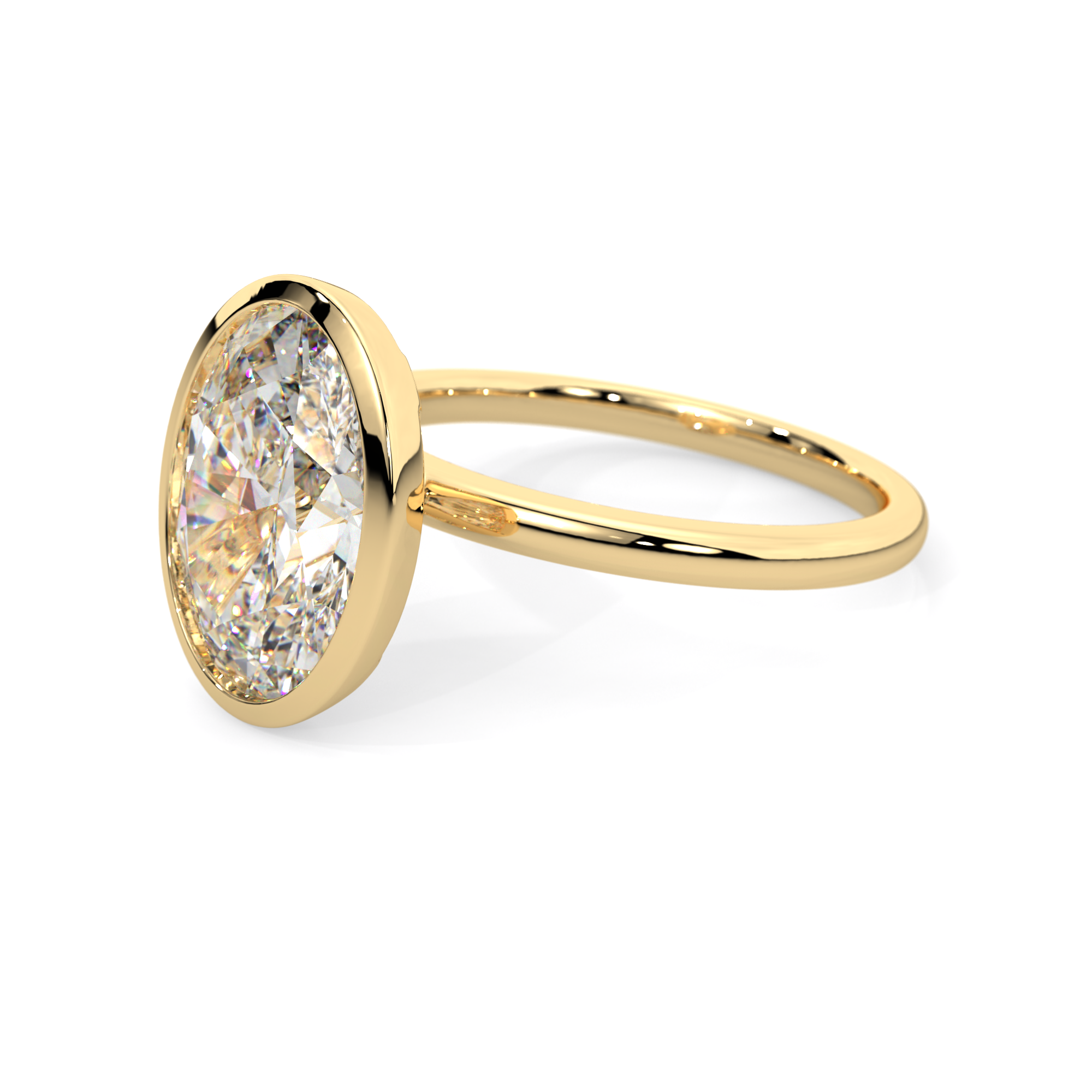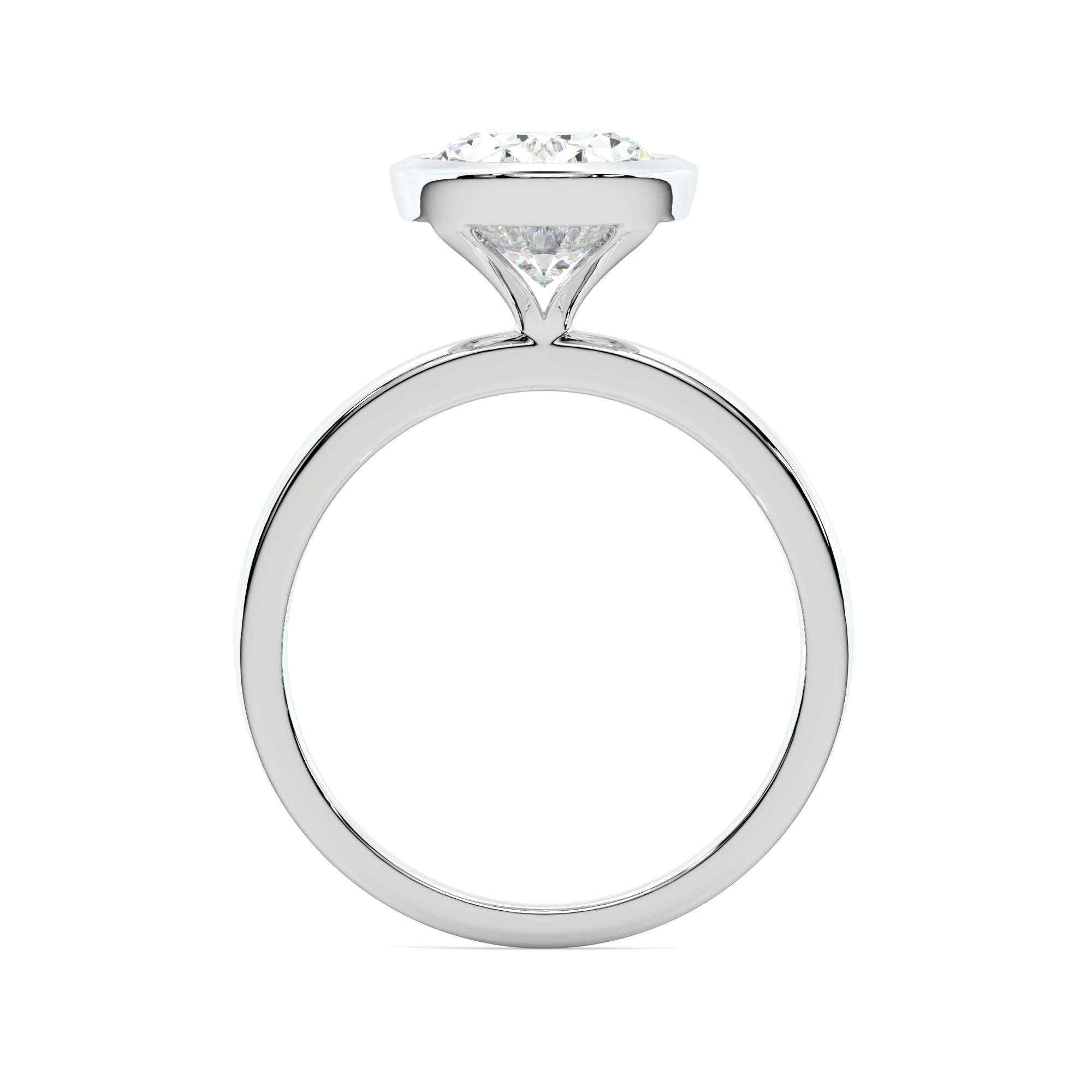 This elegant bezel-set solitaire style ring showcases a stunning Oval cut diamond. Expertly crafted in a classic design, this ring exudes sophistication and elegance. Price is for the mounting alone, please inquire about stone options.