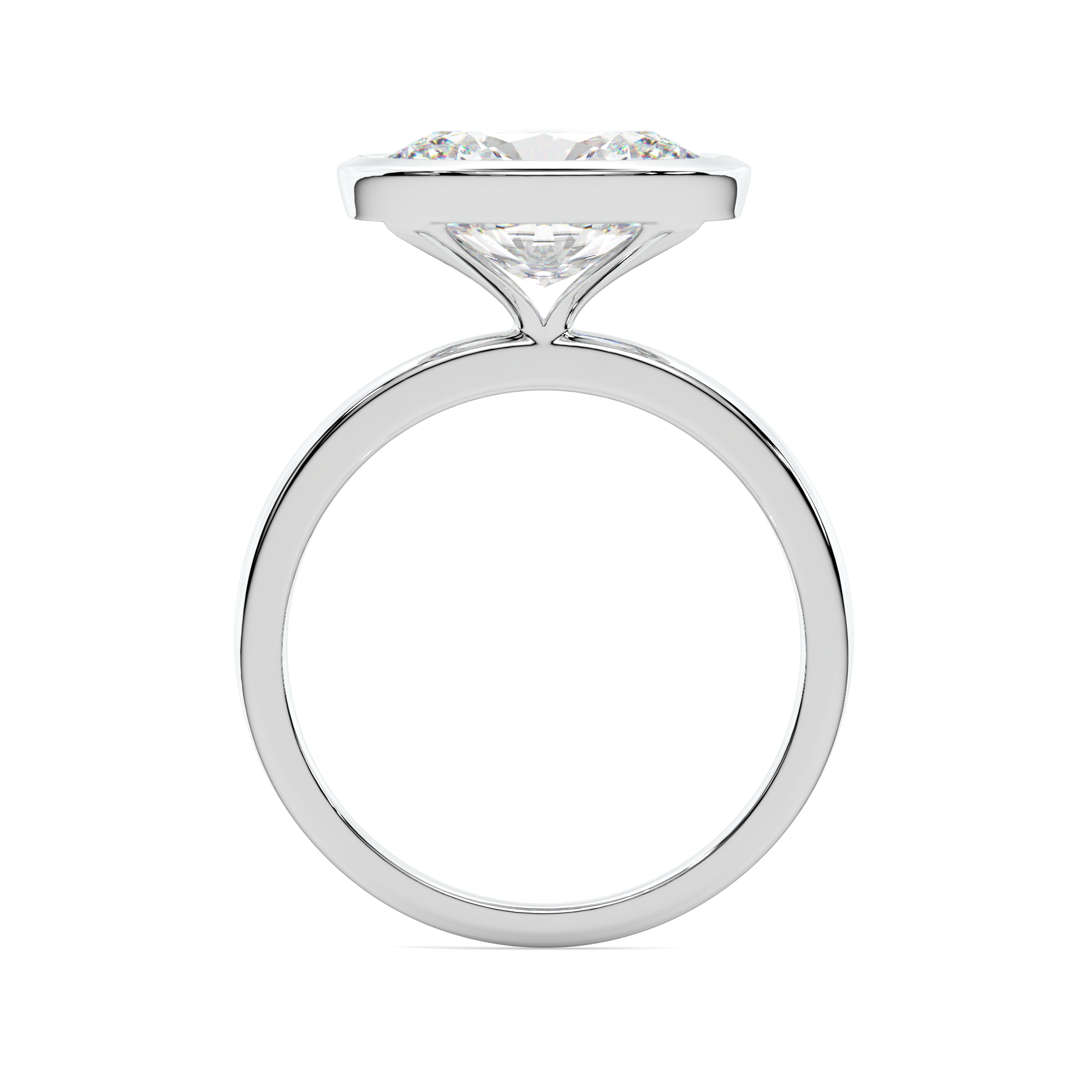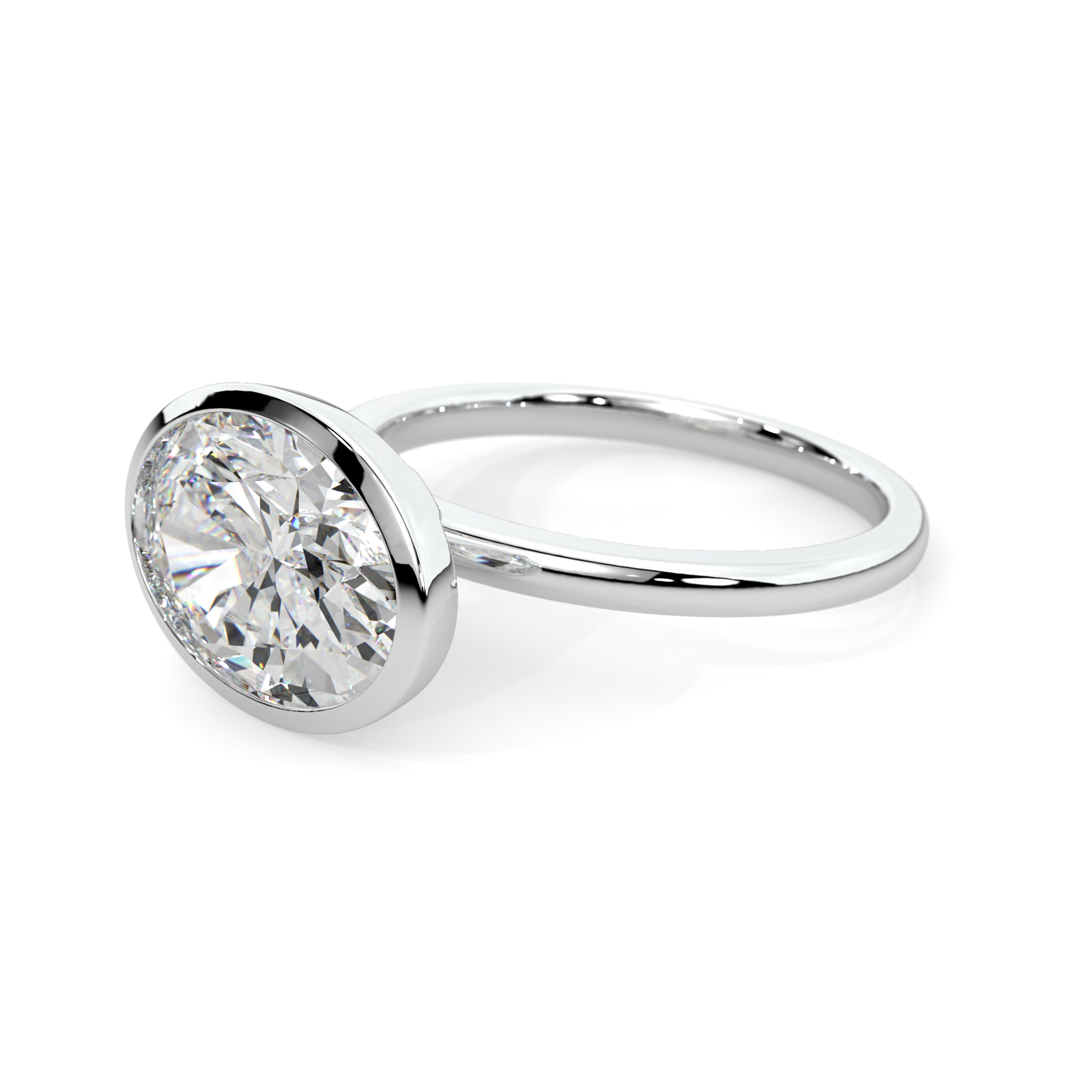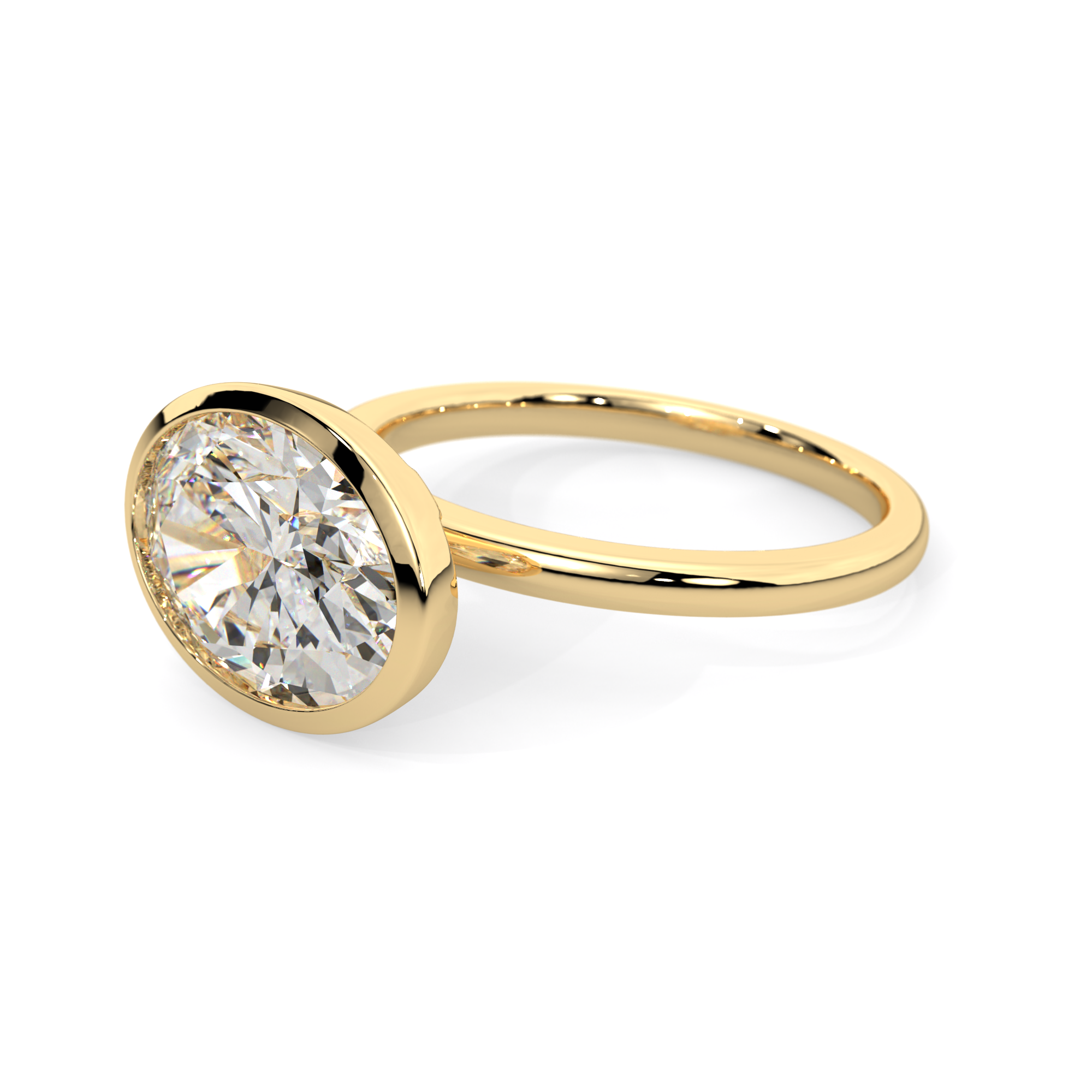 This fun bezel solitaire style ring showcases a stunning East-West set Oval cut diamond. Expertly crafted in a classic design, this ring exudes sophistication and elegance. Price is for the mounting alone, please inquire about stone options.