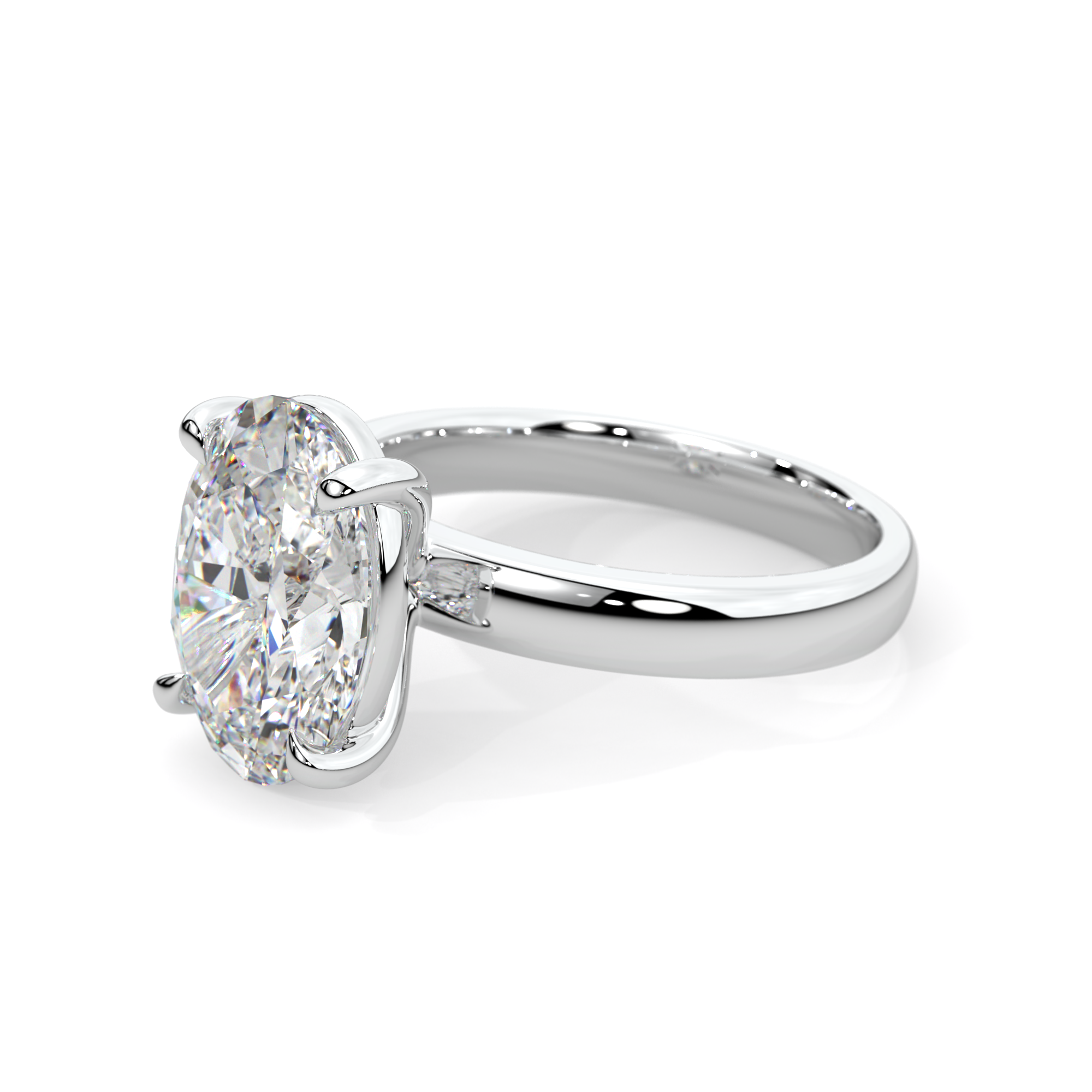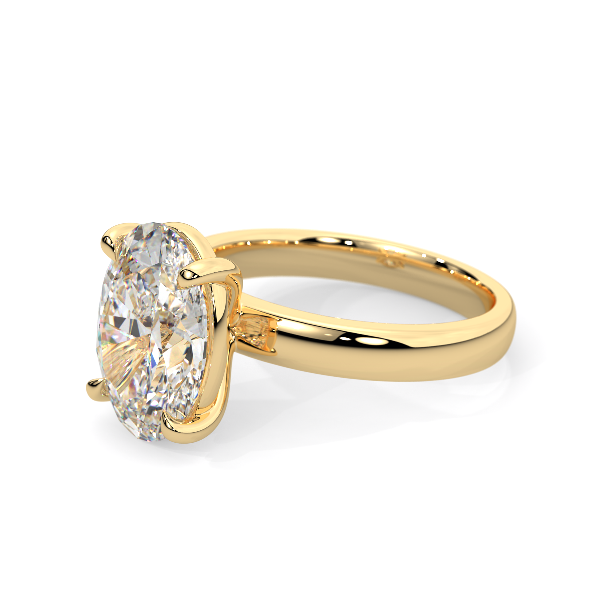 This contemporary solitaire style ring showcases a stunning Oval cut diamond with a 3.00mm wide band and four claw prongs. Expertly crafted in a classic design, this ring exudes sophistication and elegance. Price is for the mounting alone, please inquire about stone options.