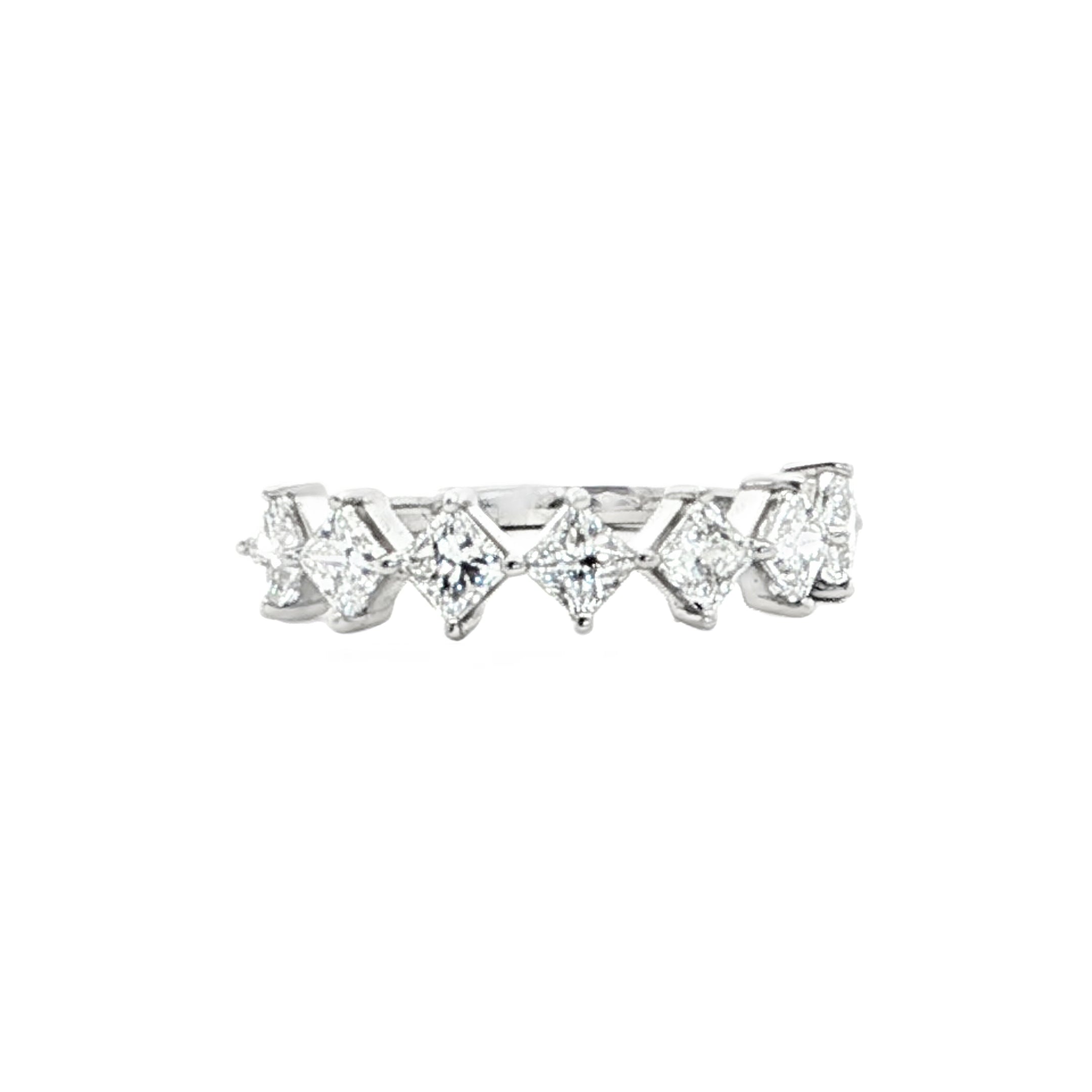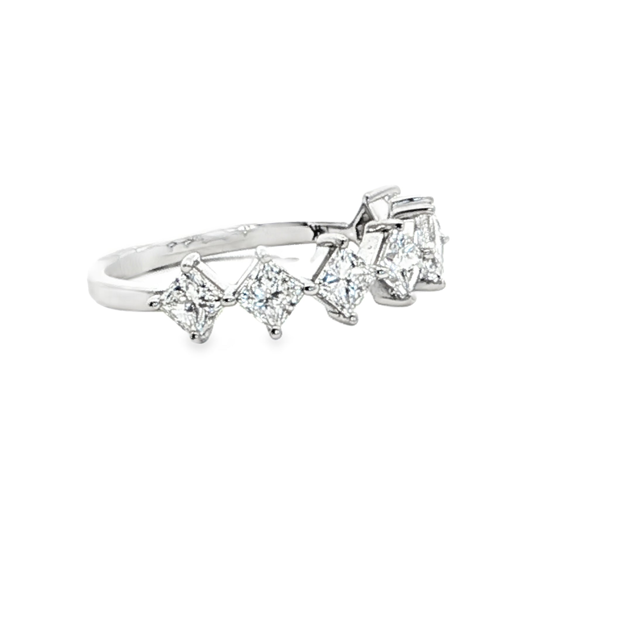 This Kite Set Princess Band is crafted with 1.29ctw of lab diamonds and 14k white gold for a timeless and luxurious appearance.