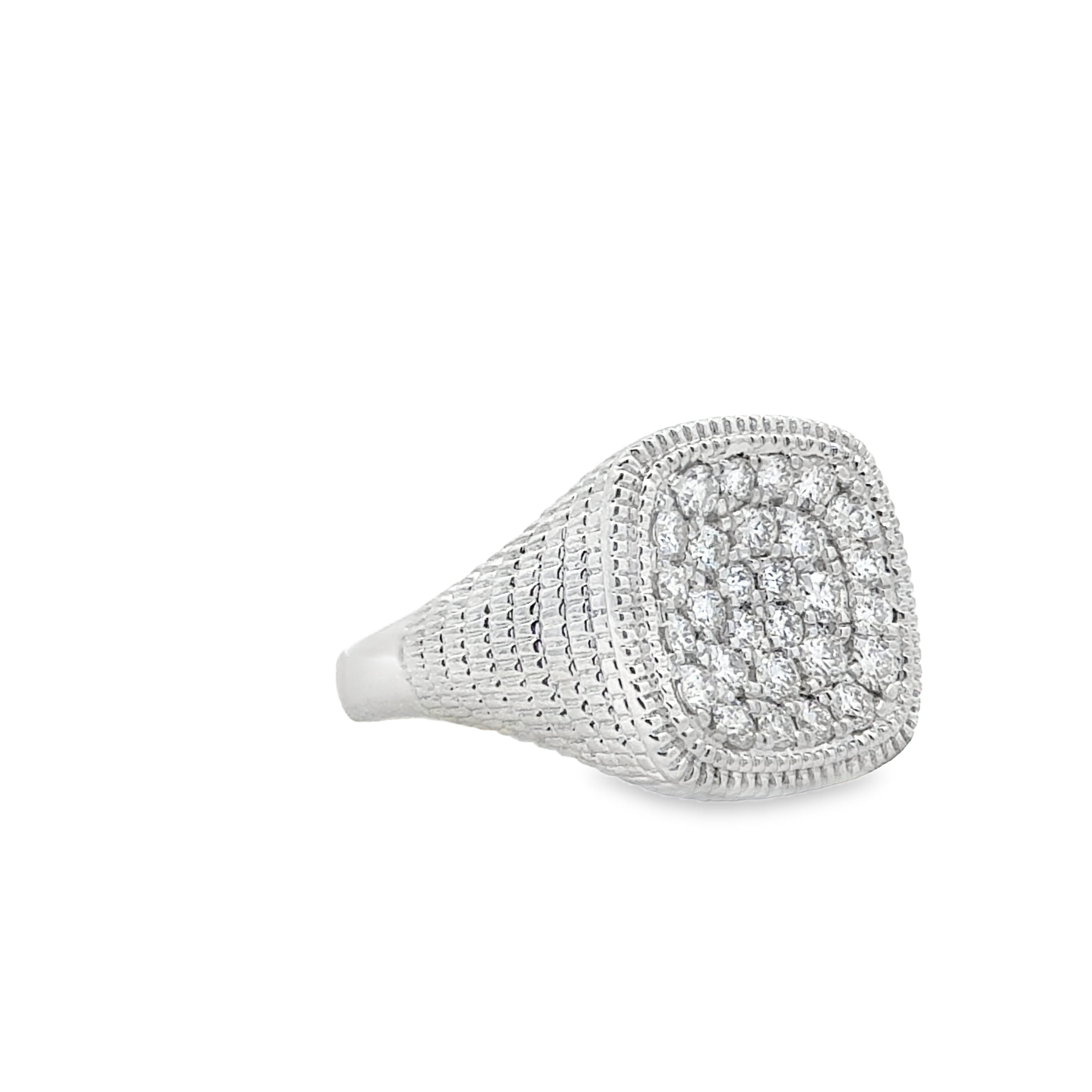 Expertly crafted with 14k white gold and adorned with a dazzling array of 0.71ctw lab diamond pavé stones, our Square Pave Ring is the epitome of elegance and luxury. This stunning piece will elevate any outfit and make a statement wherever you go.