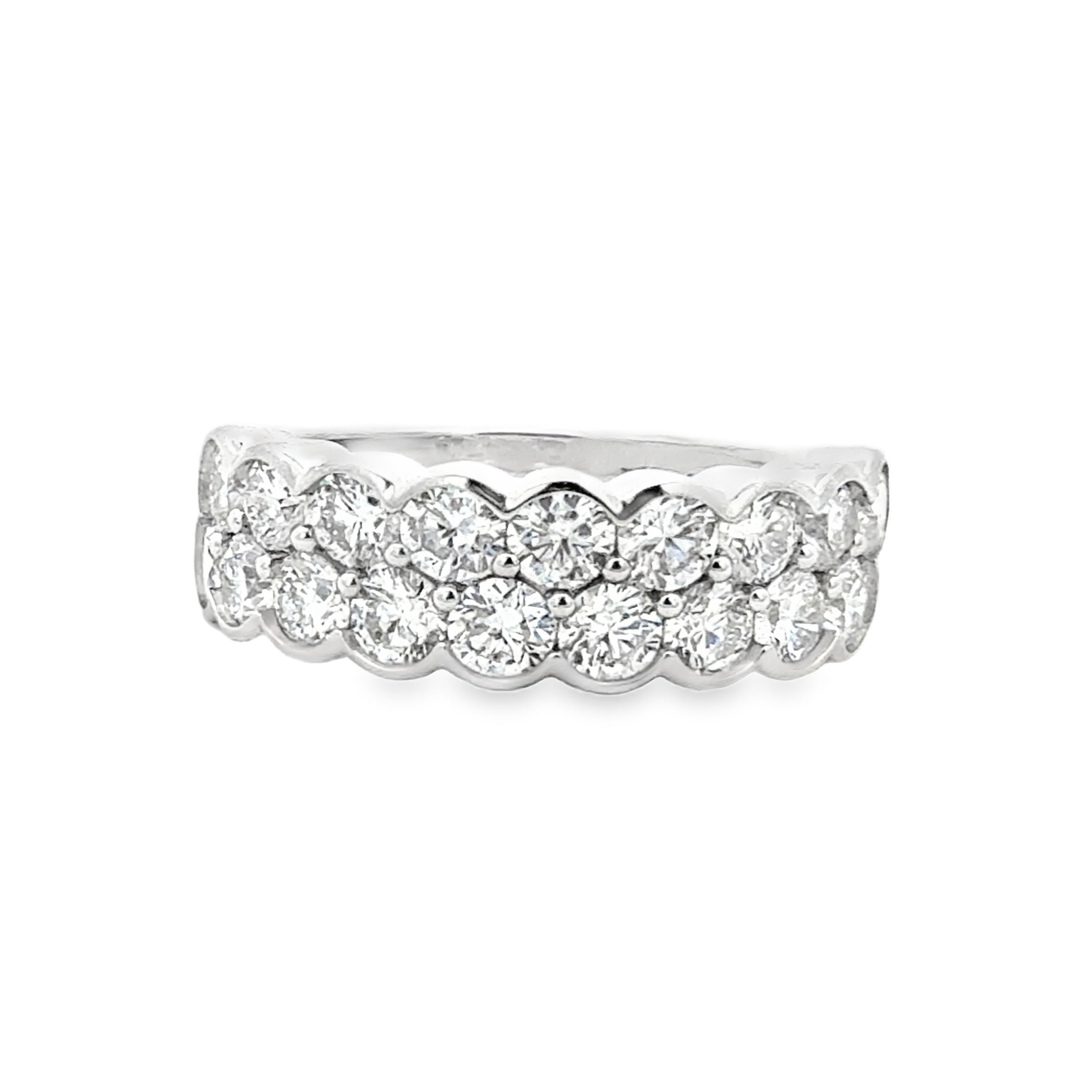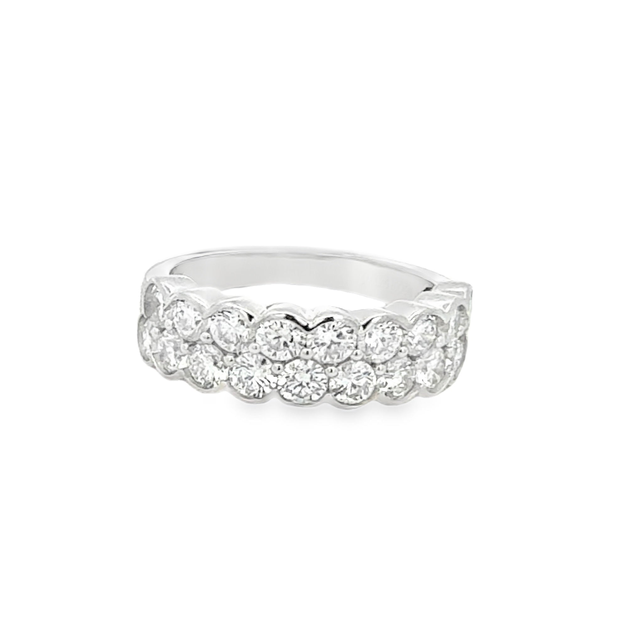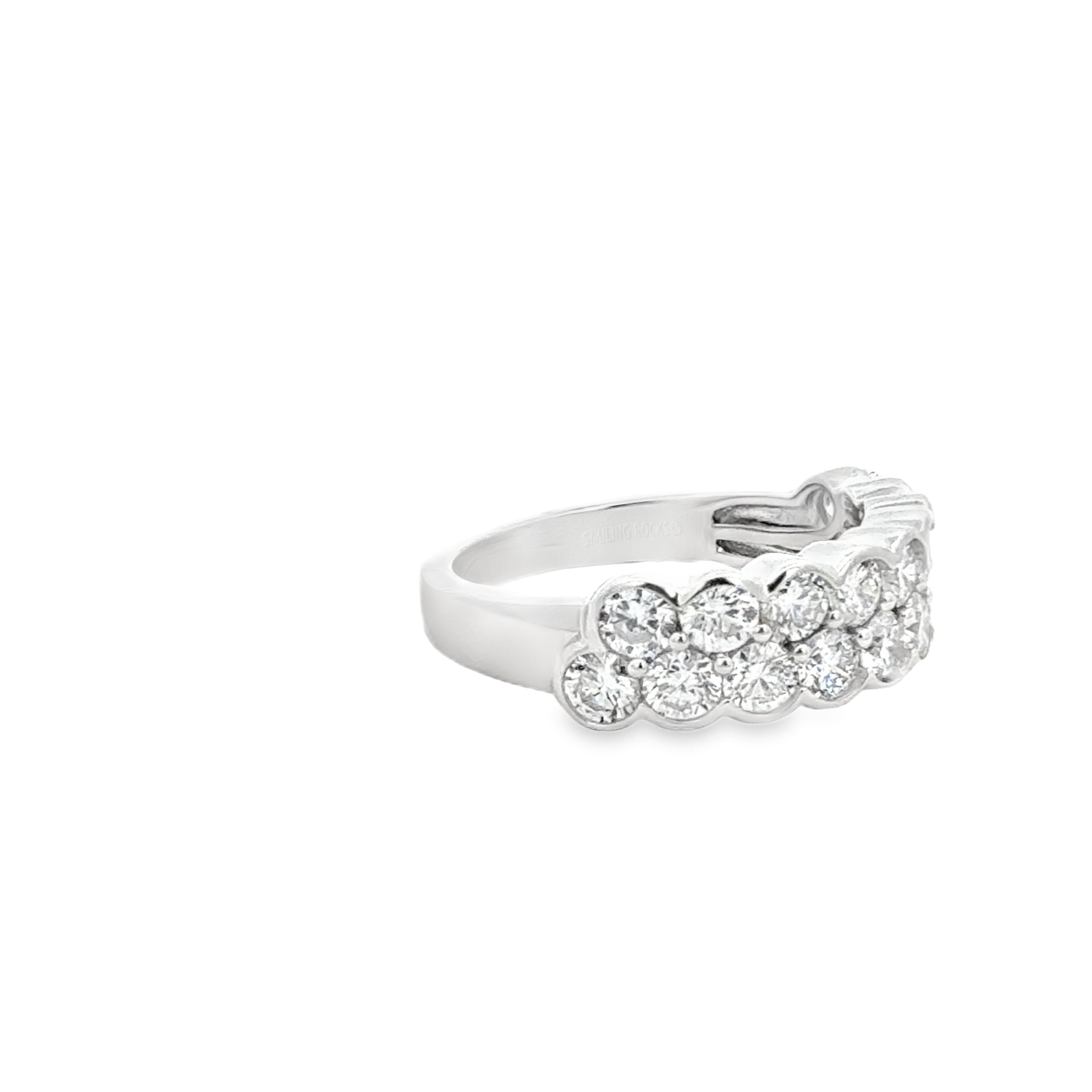 This stunning Two Row Bubble Ring features 1.98ctw of lab diamonds set in 14k white gold. The combination of lab diamonds and white gold ensures a luxurious and durable piece of jewelry. It is currently a size 7, but can be resized.